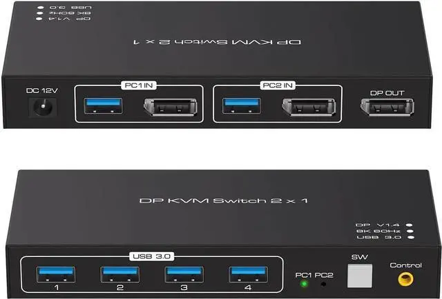 2 Port Displayport KVM Switch for 2 Computers 1 Monitor Share 4 USB Devices