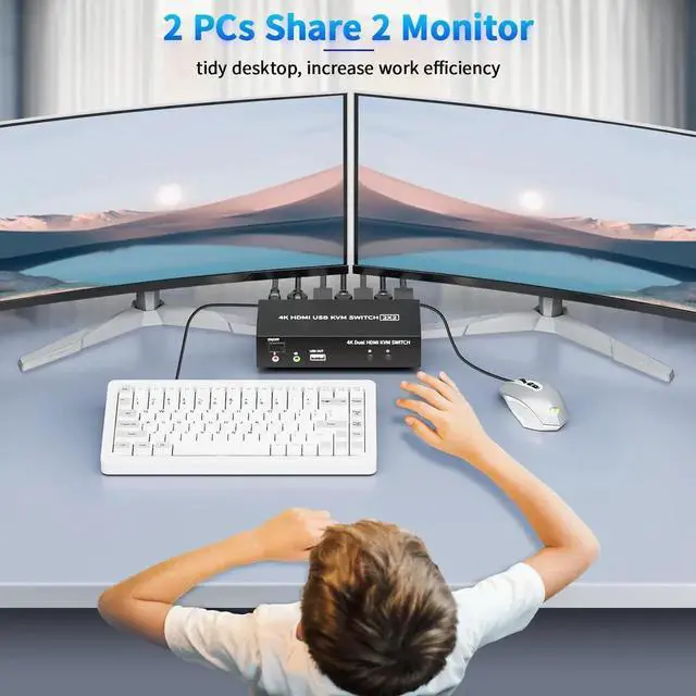 5 USB 2.0 ports dual monitor kvm switch supports up to 4K@60Hz, HDMI 2.0 HDCP 2.2 compliant