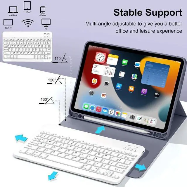 GKABXY Keyboard Case for iPad Air 11 inch M3/M2 (2025/2024) & iPad Air 5th/4th Gen (2022/2020) 10.9 -inch ^^ Detachable Wireless Bluetooth Cover with Pencil Holder (Blue Gray+White Keyboard)
