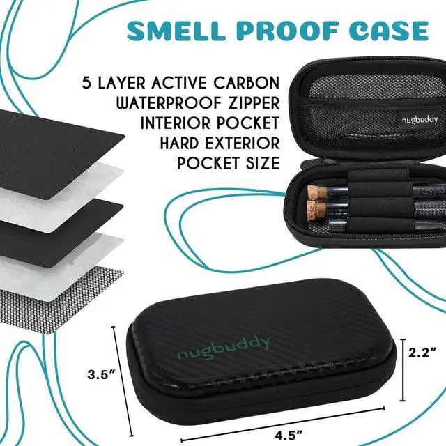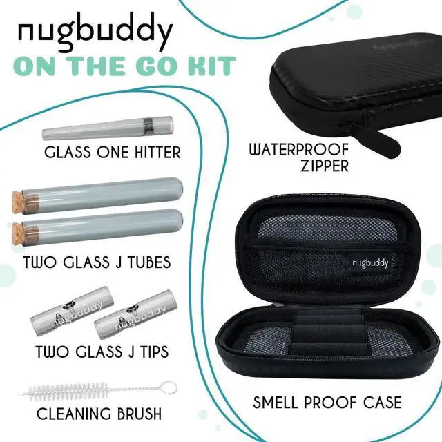 nugbuddy J-Kit - On The go Travel Case Accessory, Carbon Lining - Water Resistant Case + Glass Accessories with included Tubes, Tips, and More (Smoke)