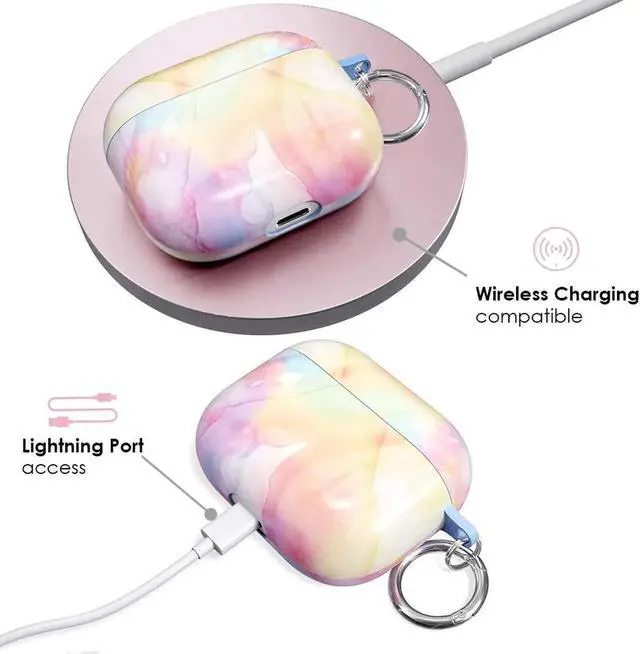 Make your AirPods 3 stand out with a stylish, protective case! Paired with a metal carabiner that you can clip to your keys, bag, or pants for easier access and less misplacing! This 2-piece, hard case is created with premium materials that won't fade in color, scratch easily or crack. Compatible with wireless charging. AirPods 3 not included.