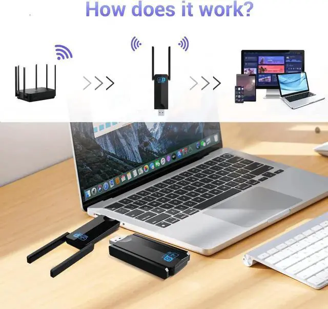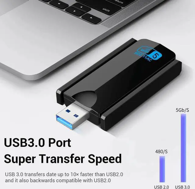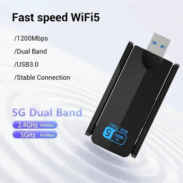 WiFi USB Wireless Adapter for Desktop - 1300Mbps WiFi Adapter for Desktop PC Laptop 5Ghz/ 2.4G hz 802.11 ac USB Wireless Adapter with 5dBi Dual Band Antenna for PC WiFi Adapter Supports Win 7/10/11
