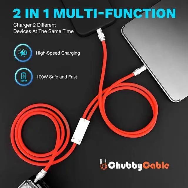 chubbycable 2 in 1 USB C Cable 100W Charge Cable Durable Multi Fast Charging Cable Ultra-Thick Silicone Universal Phone Charger Cord, Yellow+Red, 4.2FT