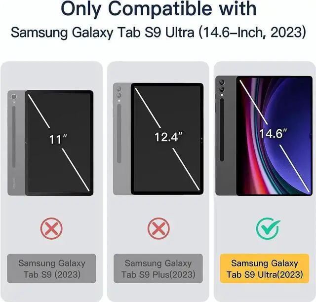COMPATIBILITY - Specifically designed for the Galaxy Tab S9 Ultra 14.6 inch 2023 Released Tablet(Model Number: SM-X910/X916B/X918U). You can double check the model number before you buy to make sure you get the right size tablet keyboard case. (Note: S Pen and tablet are not included)