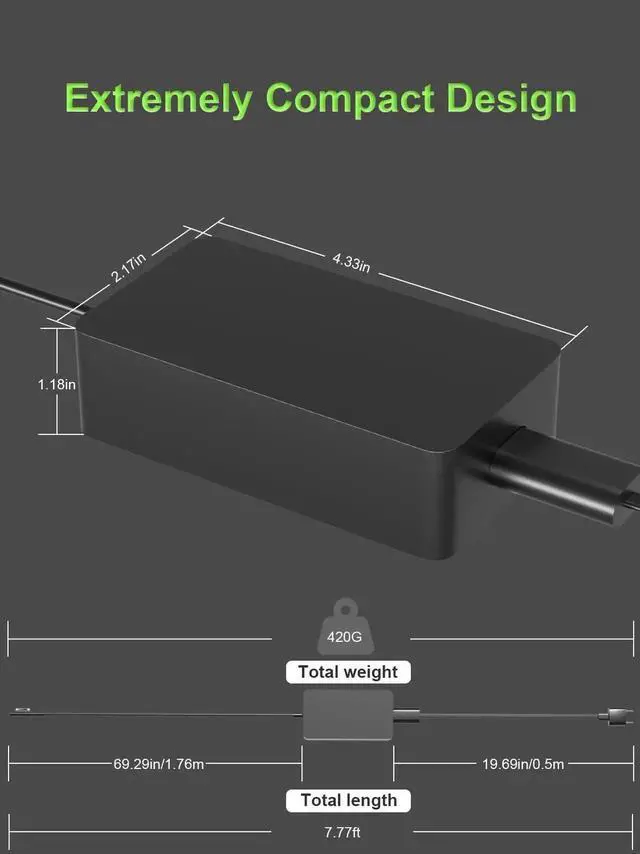 PowerPortnerLink 127W 102W Charger Compatible with Microsoft Surface Laptop Studio/Go 1 2 3 Book 3 2 1/Surface Laptop 7 6 5 4 3 2 1 Surface Pro 10 9 8 7 7+ 6 5 4 3 X Windows Charging Adapter
