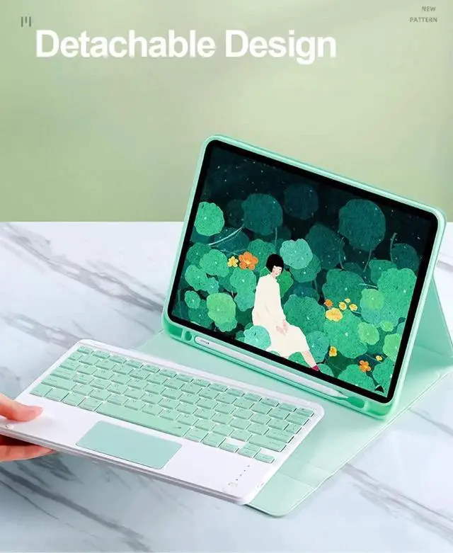 Detachable Bluetooth keyboard: The keyboard is fixed with magnets. When you don't want to use the keyboard, you can take off the keyboard and use the protective cover alone. The Bluetooth keyboard supports three operating systems: Android, IOS, and windows. It can be used not only on iPad, but also on other tablets or mobile phones.