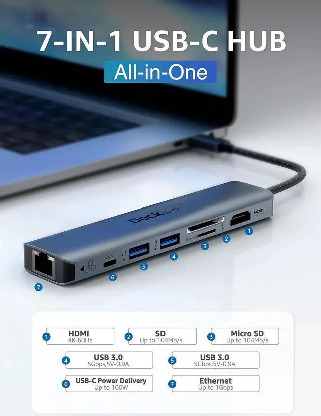 dockteck 7-in-1 USB-C Hub Sleek and Minimalist Feeling Aluminum