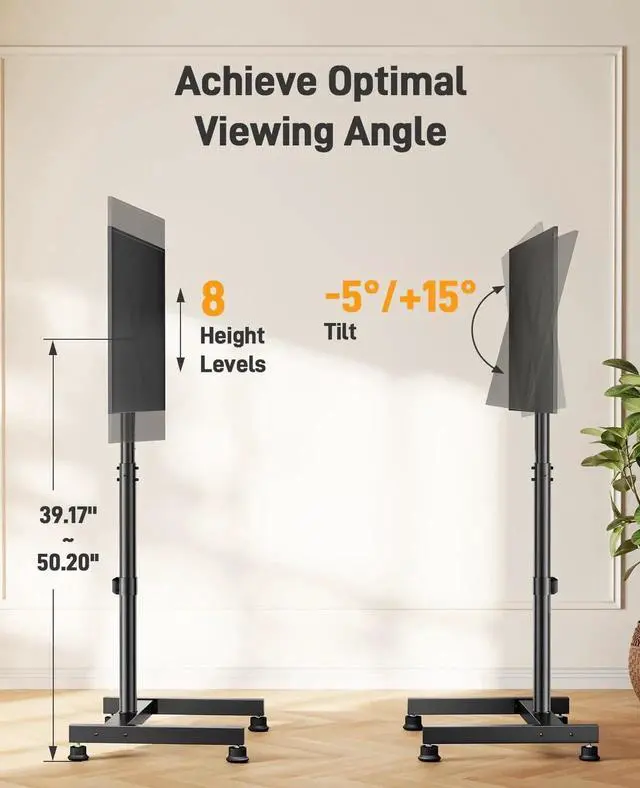 Perlegear Floor TV Stand with Mount for 26-50 inch TVs up to 55 lbs, TV Floor Stand with Rotation, Tilt, Level, Height Adjustable TV Stand for Bedroom/Living Room, Max VESA 300x300mm, PGFS12
