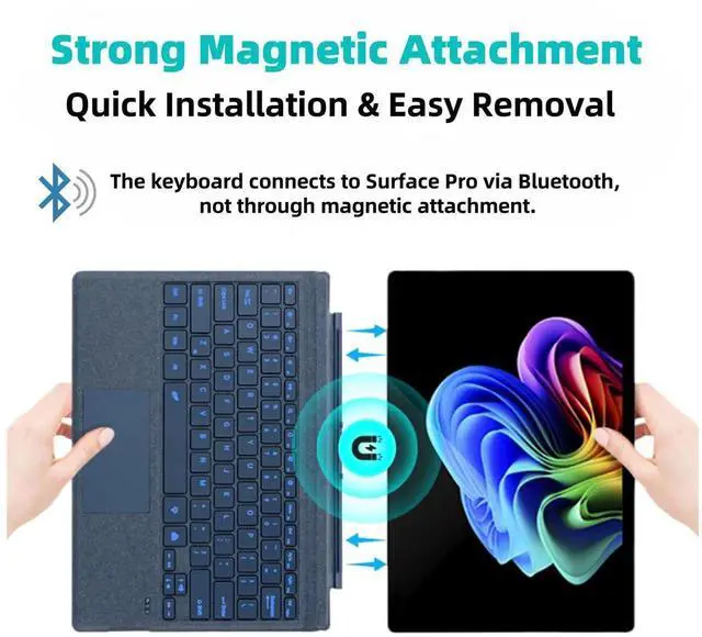 Zoof Keyboard for Microsoft Surface Pro Copilot+ (11th Edition) / Pro 11 / Pro 10 / Pro 9 / Pro 8 / Pro X, 13 inch, Detachable Type Cover with Touchpad, 7-Color Backlit & Pen Holder (Sapphire)