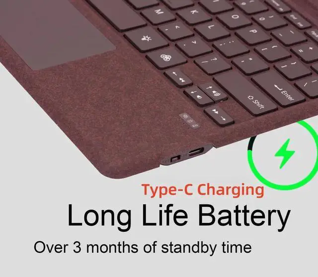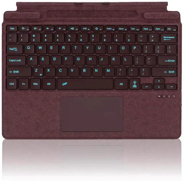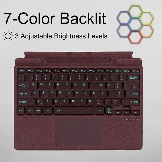 Type Cover for Microsoft Surface Pro 11 Pro 10 Pro 9 Pro 8 Pro X, 13 inch, Ultra-Slim Bluetooth Keyboard with Multi-Touchpad Mouse Rechargeable, 7-Color LED Backlit (Burgundy with Backlit)