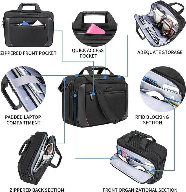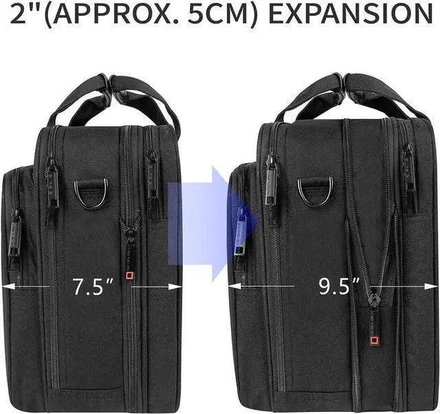 COMPREHENSIVE WORKSPACE: Large capacity laptop bag accommodates your laptops, tablets, mouse, chargers, storage drives, papers/folders, business cards, keys, and other on-the-go essentials. Features multiple organizational pockets allowing you to organize all your items in one computer bagno fumbling to find stuff! Expansion zipper provides more room to handle more carrying needs.