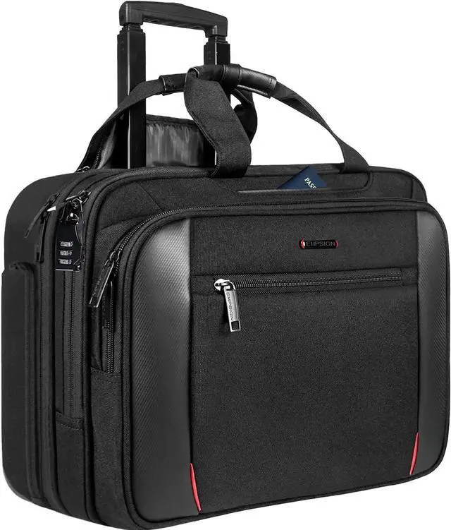 ROLLING LAPTOP BAG: The wheeled laptop case features a padded 17.3 inch laptop section and tablet section, saving your devices from scuffs and scratches. Constructed of polyster canvas fabric for durability and water repellency, prote