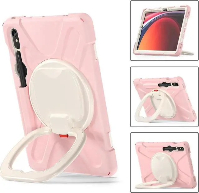 360 Rotation Case for Samsung Galaxy Tab S9 11'' 2023/S8 2022/S7 2020with Shoulder Strap S Pen Holder Rotatable Kickstand/Handle Rugged Silicone Case (Pink)