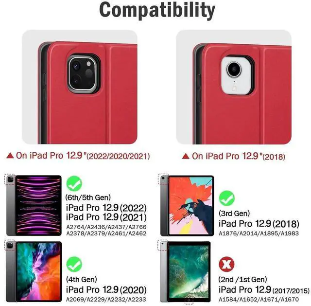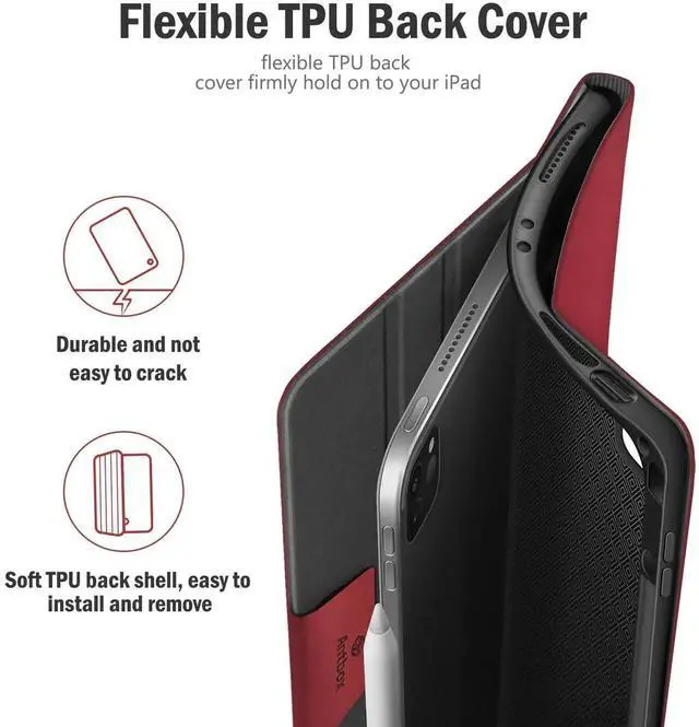 Antbox Case for iPad Pro 12.9 '' 6th Generation (2022) 5th/4th/3rd Generation (2021/2020/2018), Built-in Pencil Holder Auto Sleep/Wake Function PU Leather Smart Cover (Red)