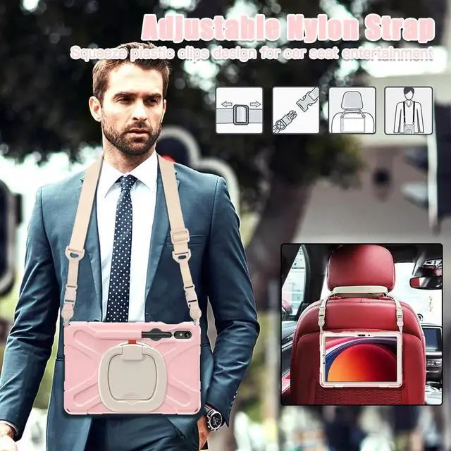 [Removable & Adjustable Shoulder Strap] Portable shoulder strap, etachable, adjustable length, It is very convenient for you to carry your tablet at work, travel or outdoors, It is also very suitable for children. You can also hang it behind the headrest of the car seat.