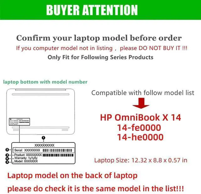 Compatible Models: This cover/case only for HP OmniBook X Laptop 14 2024 14" Notebook PC, Laptop size: 12.32" x 8.80" x 0.57", not any other laptop
