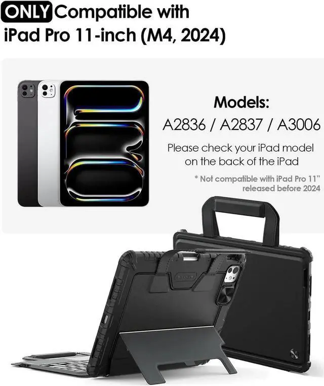 Nillkin Carry Go Keyboard Case for iPad Pro 11 inch (M4) 2024 with Handle, Rugged Case with Detachable Keyboard for iPad Pro 11, Magic Trackpad, 7 Colors Backlit, Camera Cover, Black