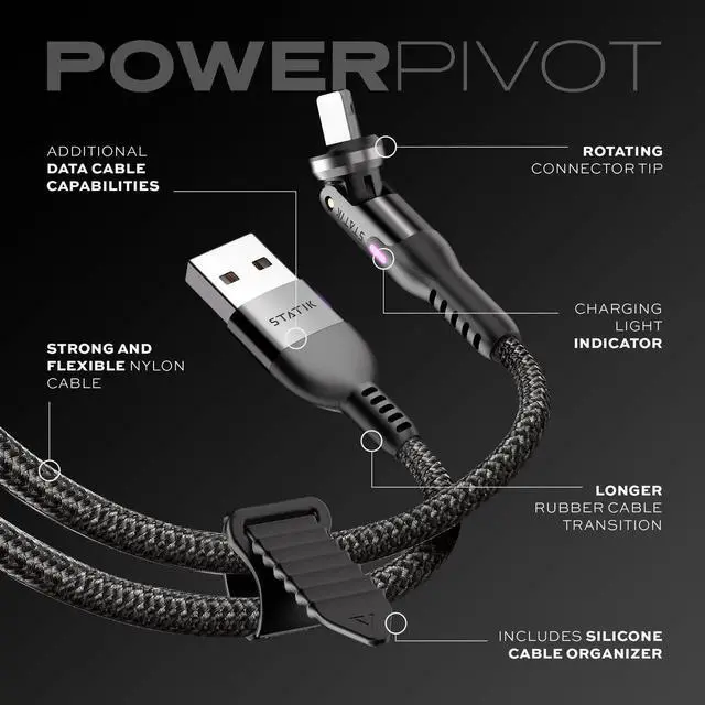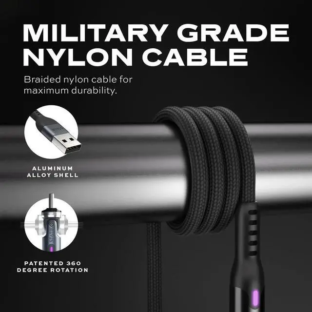 Statik 3 Pack 3FT/1M 360 Degree Rotating Right Angle USB A to iPhone Compatible Charging Cable & Data Transfer Cable for iPhone, iPad, MacBook, PC, Laptop, Smartphone, Tablet