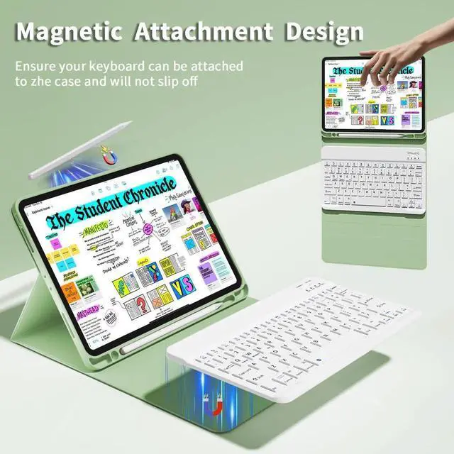 GKABXY Keyboard Case for iPad Pro 11 inch (4th/3rd/2nd/1st Gen) 2022/2021/2020/2018, Detachable Wireless Bluetooth Keyboard Case with Pencil Holder for iPad Pro 11", Auto Sleep/Wake (Matcha)