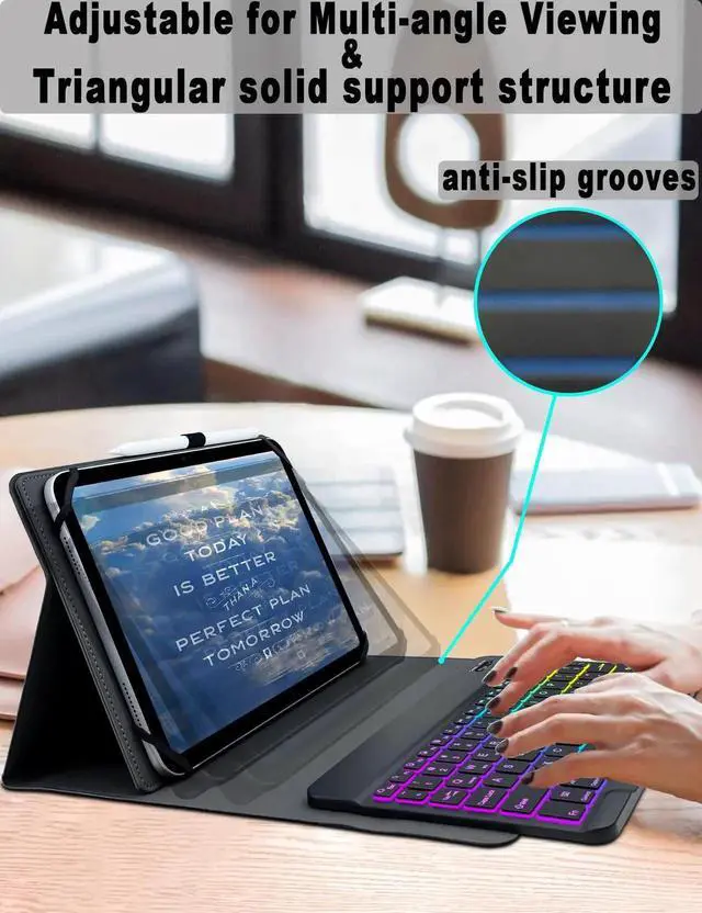 XCHYTECHER Universal Tablet Keyboard Case for 9.7", 10.1", 10.2", 10.5", 10.9", 11" Tablets, 7 Color Rainbow Backlit Removable Keypad with Pen Holder for Android 10.1 inch Tablet (Black)