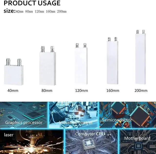 Applicable to computer CPU, graphics gpu heat, motherboard, xbox consoles cpu, graphics, semiconductor cooling piece, industrial inverter driver, laser head cooling and industrial control cabinet cooling.