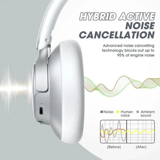 BERIBES Upgraded Hybrid Active Noise Cancelling Wireless Headphones with Transparent Modes, 70H Playtime Bluetooth Headphones Wireless with Mic, Deep Bass, 3.5MM Cable, Soft-Earpads, Fast Charging-Silver