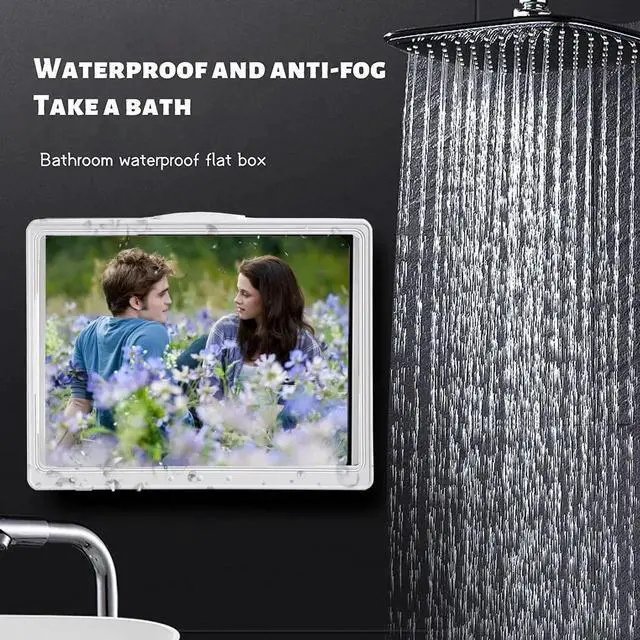 ABHILWY Shower Tablet Holder Waterproof Compatible with Ipad, Wall Mounted Bathroom Tablet Case Rotation, Adhesive Touchable Cradle with Glass Mirror Anti-Fog Screen for Kitchen 12.9 inches Luxury