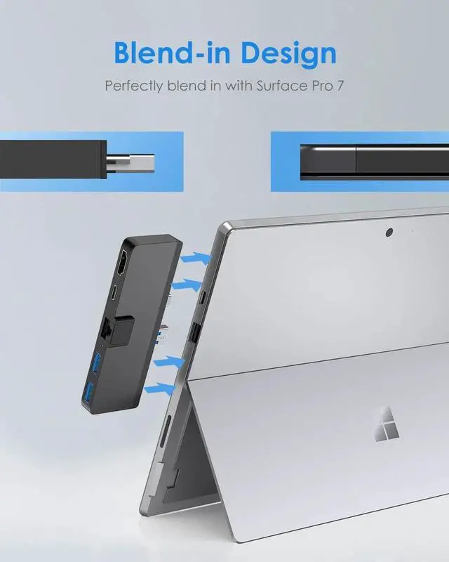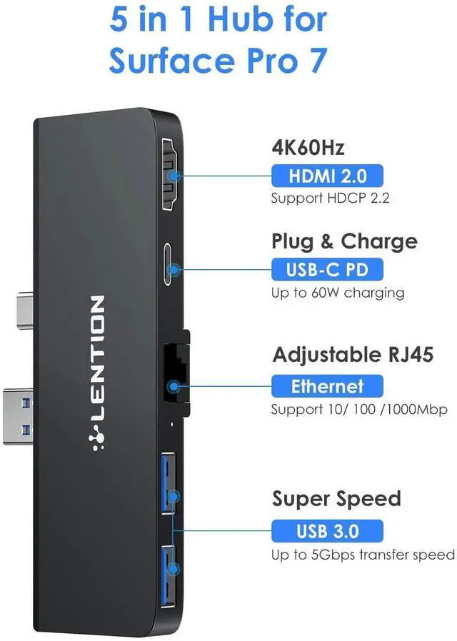 LENTION Surface Pro 7 USB C Hub Docking Station, 5-in-1 Surface Pro 7 Hub, 4K@60Hz USBC to HDMI Hub, USB C to Gigabit Ethernet Hub, 2 USB 3.0 Hub, PD 60W Type C Charging Port Hub(CS35, Black)