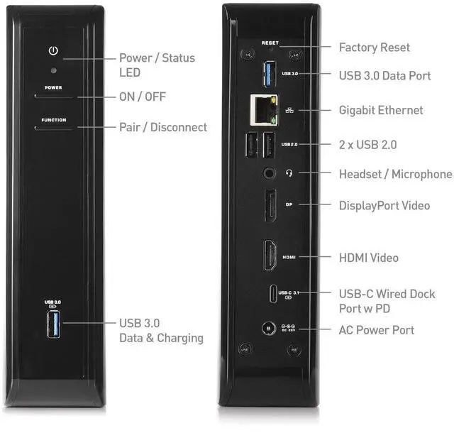 Connect your Windows computer to displays with HDMI and DisplayPort, and a headset or microphone. Add Gigabit Ethernet connectivity and connect USB 2.0 or 3.0 peripheral devices. Provides laptop charging up to 60 watts for a computer with Thunderbolt 3 and a USB 3.0 charging port for a smartphone.