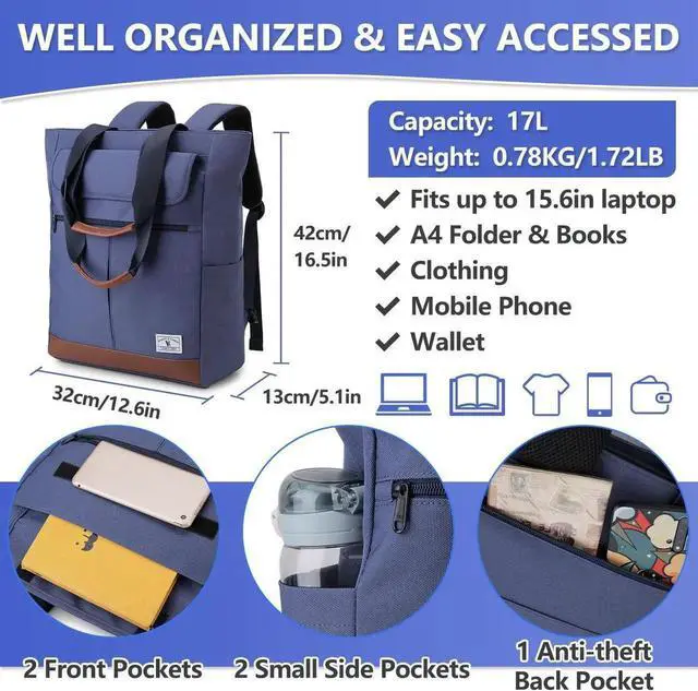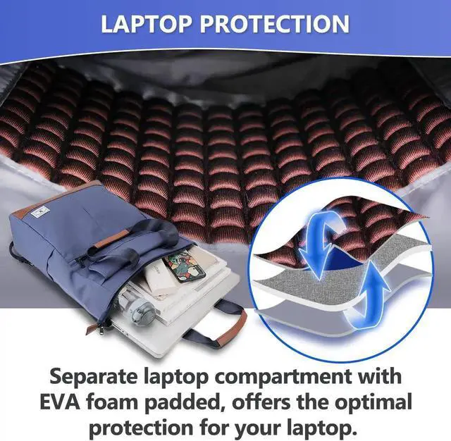 LARGE CAPACITY&WELL ORGANIZED: There are multiple zipper pockets for storage. The shockproof laptop pad can fit and protect a 15.6" laptop well.1 Large main compartment is perfect for your books or A4 folder. EXTERIOR- 2 front pockets(1 zipper pocket,1 large slot pocket with magic tape cover), 2 side pockets and 1 hidden pocket on the back to store your belongings well.