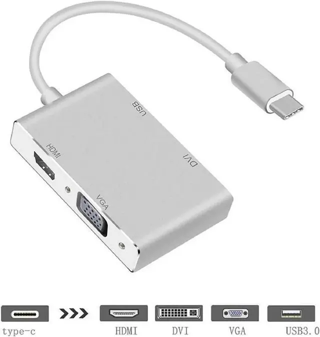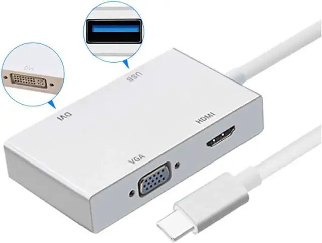 USB C to VGA HDMI DVI USB 3.0 Adapter, 4 in 1 USB 3.1 Type-C Hub Male to Female Multi-Display Video Converter for Mac Pro, MacBook Air, iPad Pro, XPS, and More