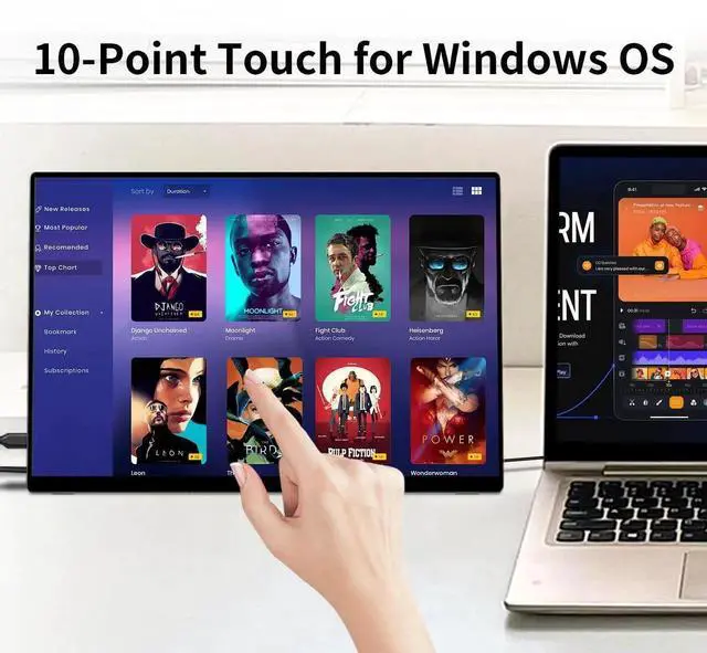 DAMRAPT Portable Monitor Touchscreen 15.6" 1080P 10-Point Touch Screen, Travel Monitor with Protective Sleeve & Built-in Stand, HDMI USB C External Screen for Laptop, PC