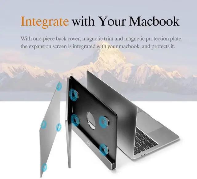 Take Productivity with You With magnetism, JoyReal extended screen can be folded and adsorbed on your macbook. and coming with 2 multi-functional screen protection boards, It become safe to put your mac and usb monitor into a backpack, or carry it anywhere.