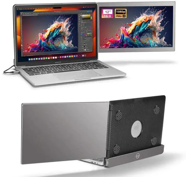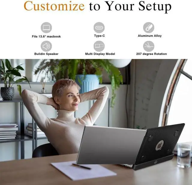 Fusion with Your Macbook Especially designed for your 13.6 inch mackbook, easily buckle JoyReal dual screen extender on your macbook, and even fix it with removable nano-adhesive, which integrates the dual monitor with your macbook.