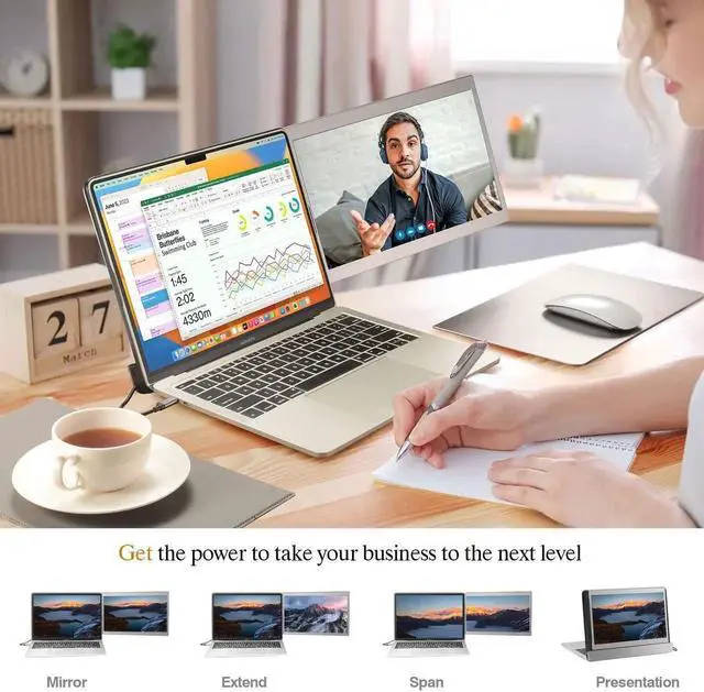 Improve Work Efficiency After installing JoyReal 12inch laptop monitor extender, you will get 4 additional screen display modes: mirror, extend, span and presentation, no longer worry about frequent page switching. Of course, you can also connect the screen extender to your swith, ps5 or mobile phone for more funny.
