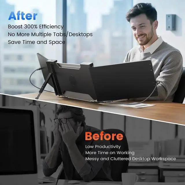 14'' Triple Laptop Screen Extender, 1080P FHD Portable Monitor for 14"-17" Laptop with USB-C/HDMI Port, Plug-Play Monitor Extender for Triple Display for Mac/Windows Remote Work & Multitasking
