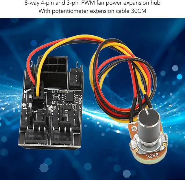 Function: Up to 8 fans can be powered by this hub speed controller, and the rotating potentiometer can adjust the speed of 8 PWM fans at the same time. Also comes with a potentiometer extension 30CM.
