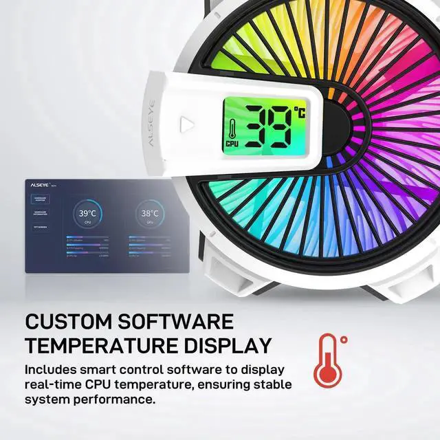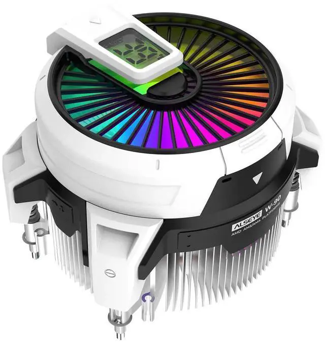 ALSEYE W90 CPU Cooler, Temperature Displayed CPU Cooler for Small Size PC Case with Powerful 90mm ARGB Lighting Fan and 40mm High-Performance Heat Column Inside (W90 AMD Version)