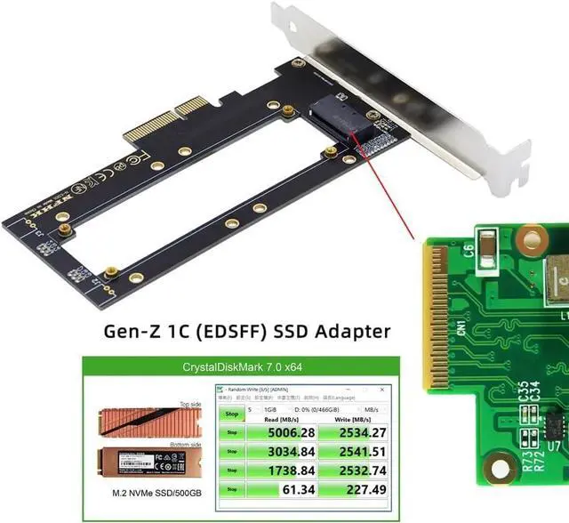 This converter enables the connection of a GEN-Z SSD in E1.S. Fit for 5.9mm & 8.0mm SSD without heat sink.