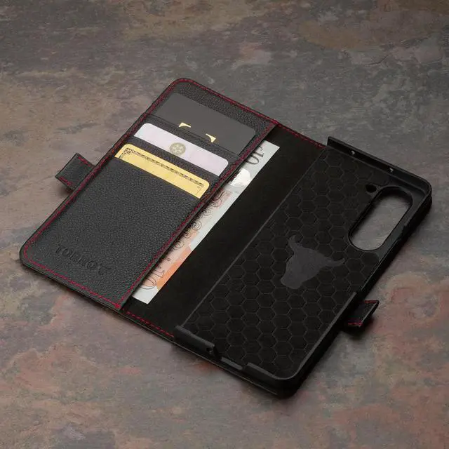 COMPATIBILITY The TORRO leather Samsung Galaxy Z Fold5 case with card holder is designed and crafted exclusively for the Galaxy Z Fold5. The precision fit ensures full, unrestricted access to the screen, camera, buttons and charging port.