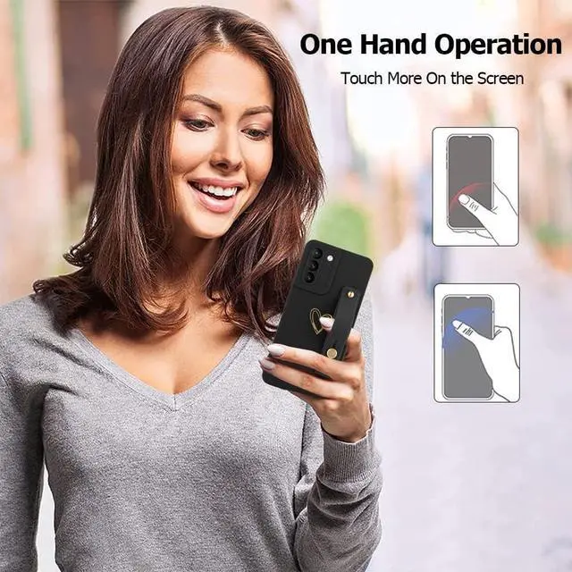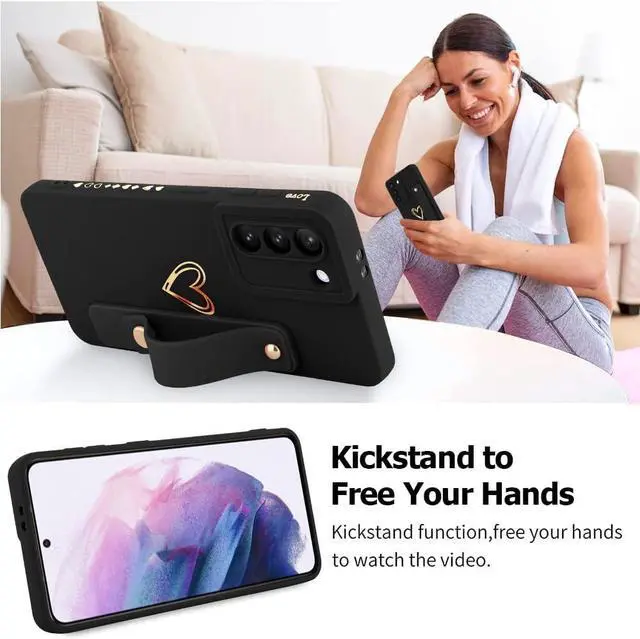 Adjustable Wristband Kickstand for Galaxy S21 5G Case: Your hand can pass through the wrist strap when you take your Samsung S21 5G, protecting against accidental dropping of phones. The wrist strap can be used as a phone holder for you to enjoy videos, browsing recipes, reading etc. This unique adjustable stand is convenient and stylish.