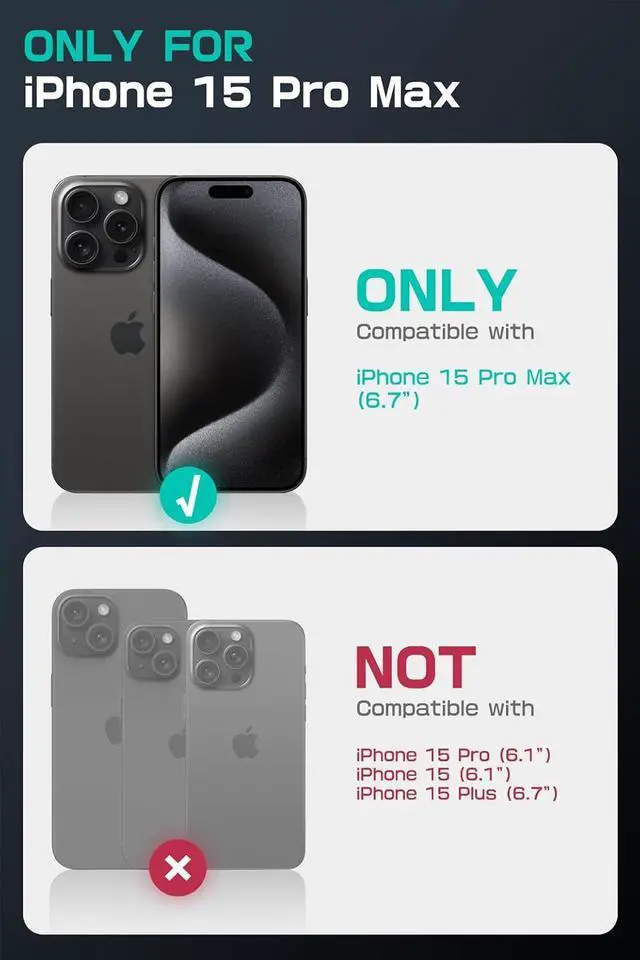 [Compatibility]: Compatible with iPhone 15 Pro Max 6.7 inch (2023 Release) ONLY. Compatible with MagSafe and Most Other Wireless Chargers.
