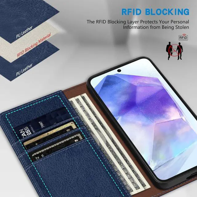 Multi-function: This wallet case with3card slots + 1cash compartments, RFID blocking technology allows your card to be covered in protection and will not be stolen by others. with kickstand perfect for watching videos, viewing or reading by free from your hand. TPU inner shell and Soft PU leather out cover, with strong magnet.