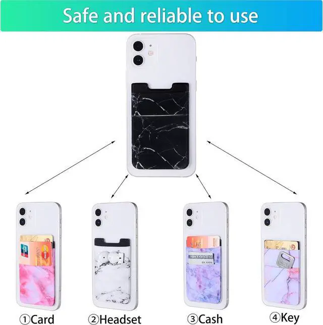 Package include: comes with 6 pieces of double pouch phone card pocket holders in 6 different marble colors, enough quantity to meet your daily use and replacement needs, you can keep them for future use or share them with your loved ones, family and friends