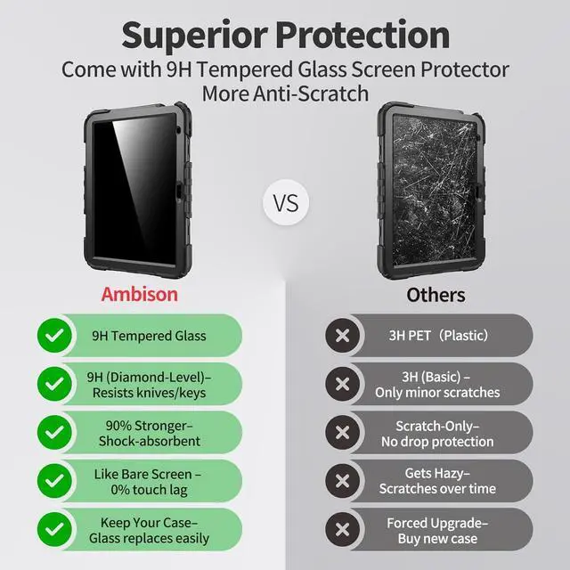 Ultimate Defense Bundle: 9H+ aerospace-grade tempered glass (military tested) + heavy-duty iPad case. 7-8x more durable than standard protectors - shatterproof, anti-scratch, and impact-resistant. Perfectly compatible with iPad 10th generation cases, A16 cases, and 11th generation models.