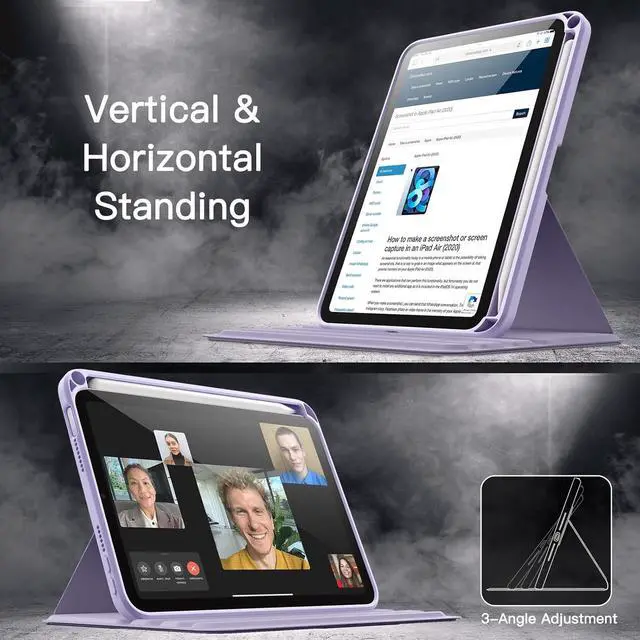 [360 Degree Rotating] The case coming with a 360 degree swivel design, stably supports your iPad whether in a portrait or landscape stand mode in various angles with three anti-slip deep grooves. Functional and convenient