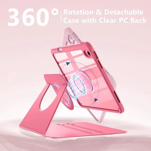 360°Rotating & Detachable Strong Magnetic Back 360°rotating design, which can stably support your iPad whether in a portrait or landscape stand mode in various angles with two anti-slip deep grooves. Designed with a detachable clear backshell, you can remove the cover if you don' t need it, very flexible and convenient