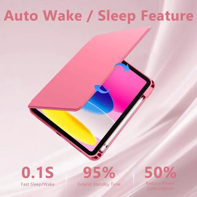 Auto Wake/SleepThis case features a unique magnetic clasp that automatically wakes your iPad when opened and puts the device to sleep when closed. This helps reduce battery loss and extend the standby time
