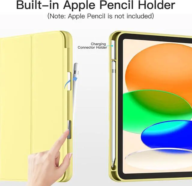 Built-in Apple Pencil 3rd/1st Generation & Charging Connector HolderThere are slots for Apple Pencil(3rd/1st Generation) and charging connector. It' s easy to place and remove your pencil, keep the pencil as safe as your iPad all the time. With charging connector slot, you can charge your Apple pencil any time and don' t worry your connector will be lost. (Note: Pencil is not included)
