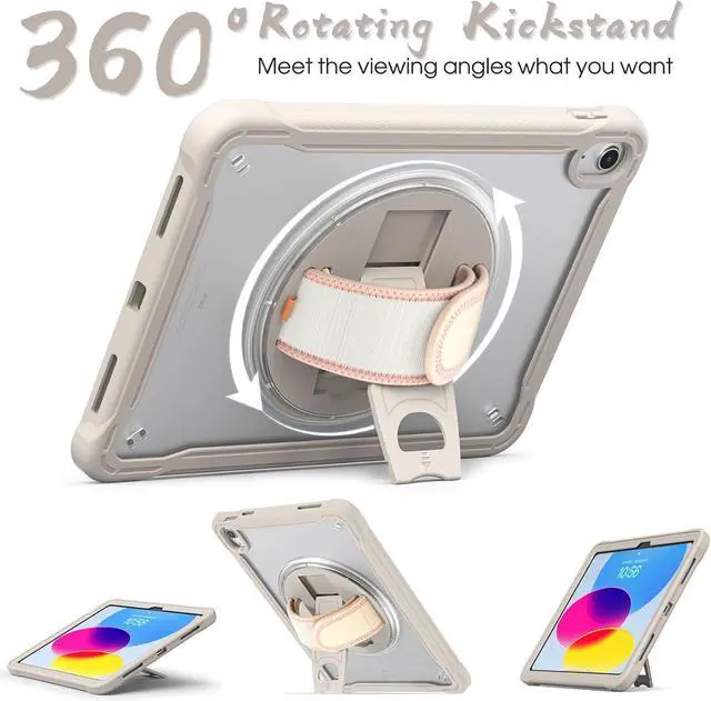 360° Rotatable Kickstand and Velcro Handle: This iPad case features a rotatable and collapsible kickstand that allows you to position your iPad as you see fit, suitable for drawing, studying, working or watching a movie. The adjustable Velcro hand strap is easy to grip and ideal for students, teachers, doctors and waiters